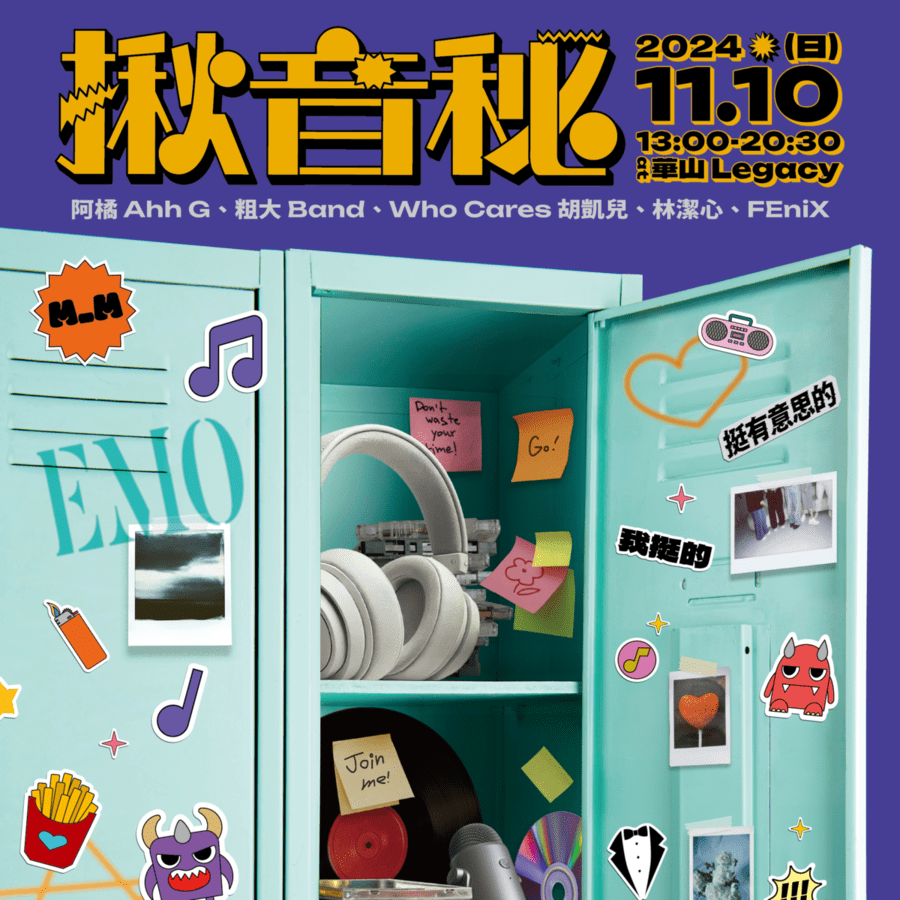 「揪音秘」將於11/10在Legacy Taipei登場,演出陣容力邀FEniX、林潔心、Who Cares胡凱兒、粗大Band、阿橘Ahh G熱鬧開唱,還特別安排合作舞台,粗大Band feat. 阿橘Ahh G、Who Cares 胡凱兒 feat. FEniX 承隆、林潔心 feat. FEniX,驚喜限定組合秒掀樂迷暴動。