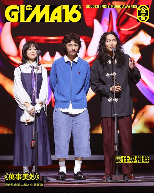 第16屆金音創作獎公布得獎名單,百合花《萬事美妙》榮獲最佳專輯獎及評審團獎,陳嫺靜囊括含最佳新人獎在內共三項大獎,最佳樂團獎由Robot Swing拿下,最佳創作歌手獎為林以樂,最佳現場演出獎得主為當代電影大師。